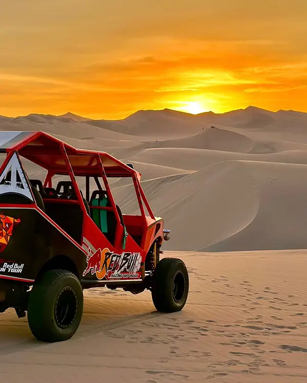 - Llegada al Oasis de la Huacachina, harán deportes de aventura como sandboarding y buggies.